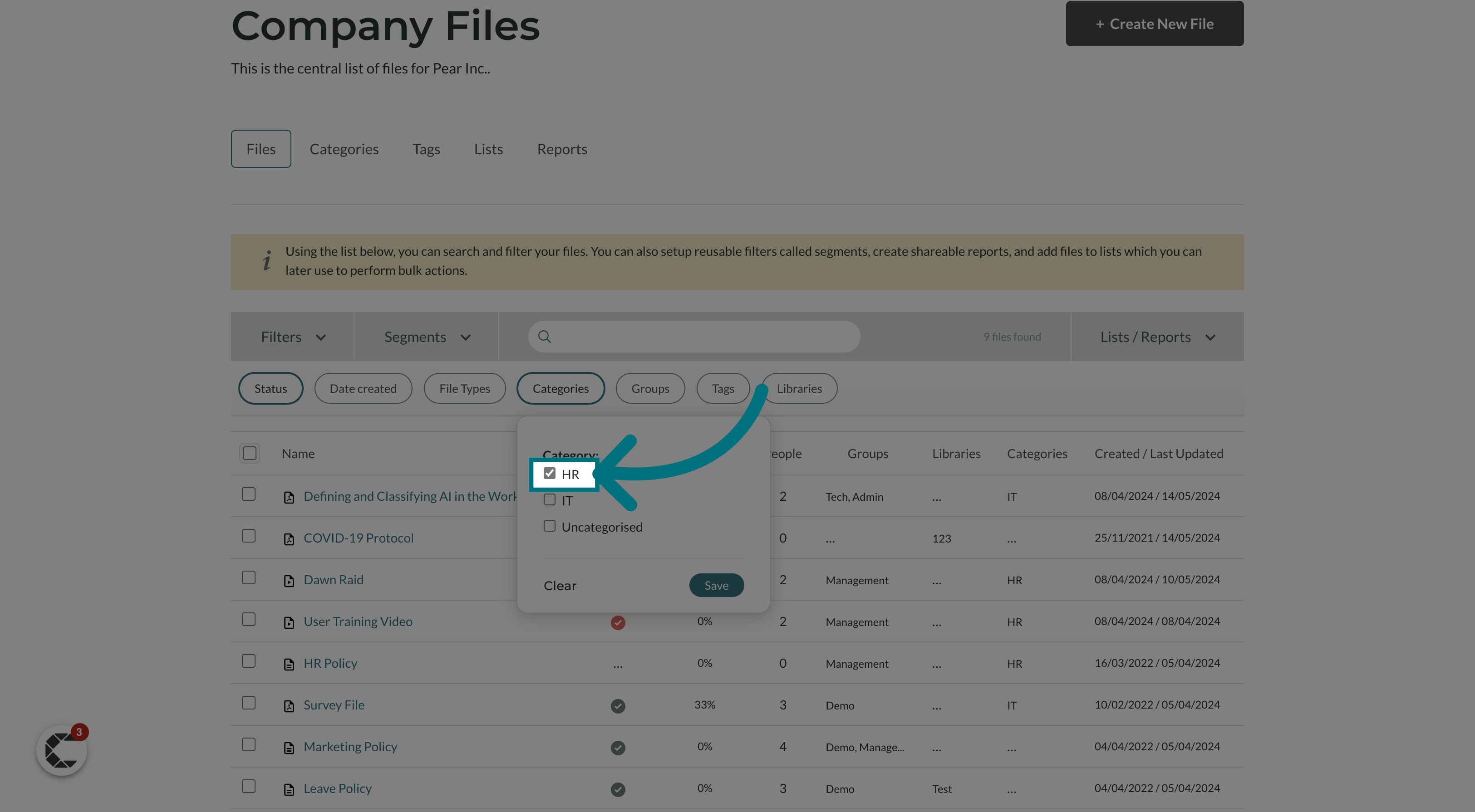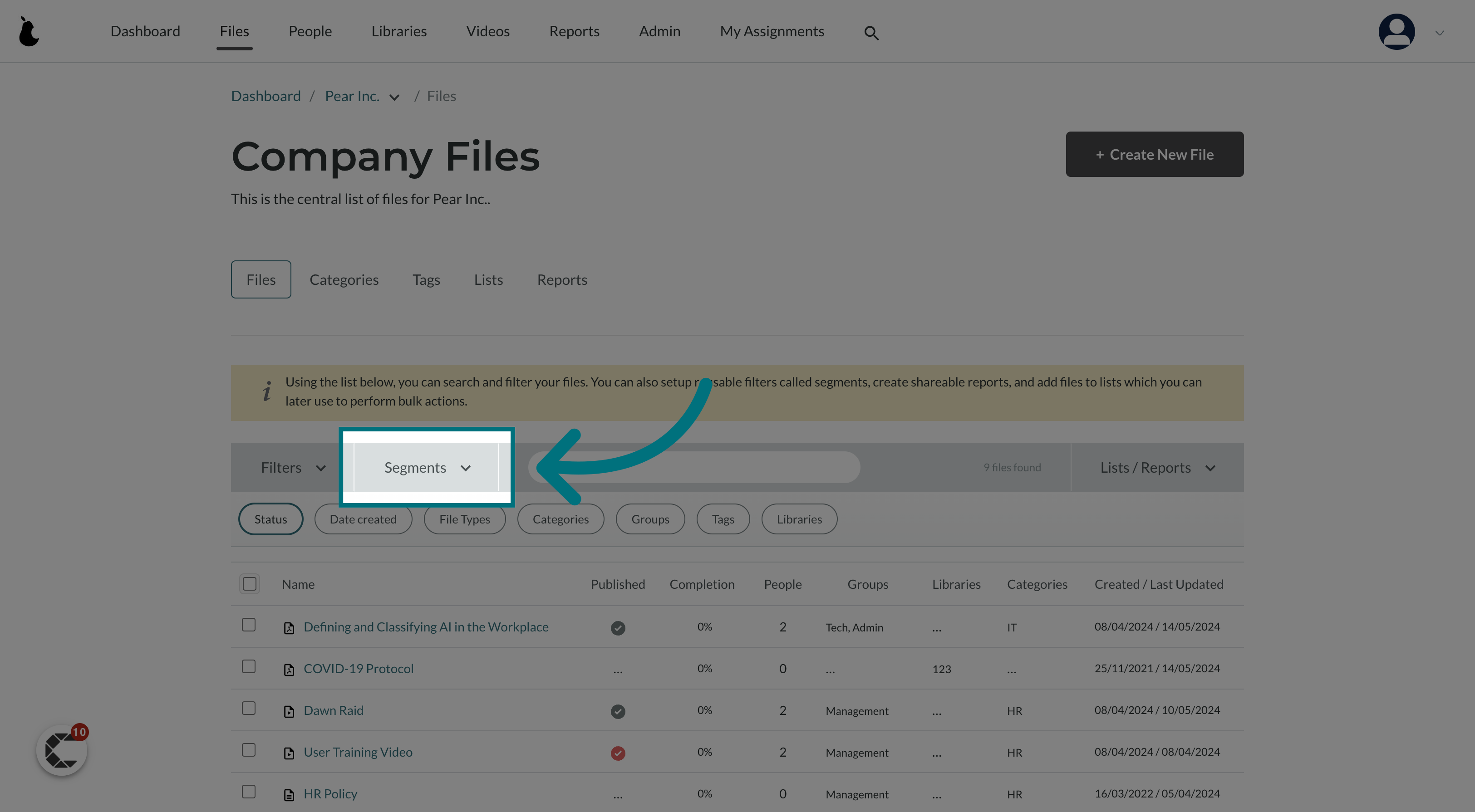 - Please note: segments are created based on the applied filters. Clicking on individual files won't allow you to save them as a segment.